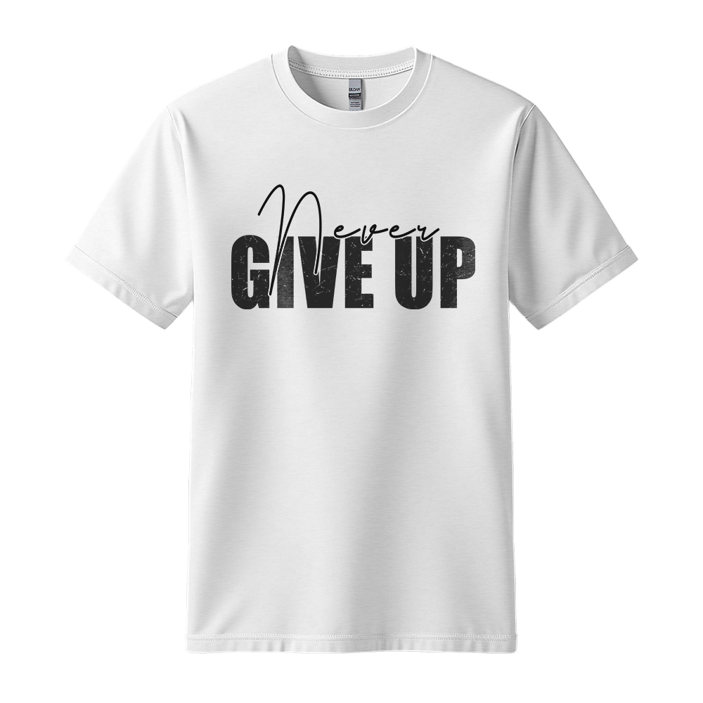 Fuel your hustle with the bold Never Give Up Script inspirational clothing. This striking design...
