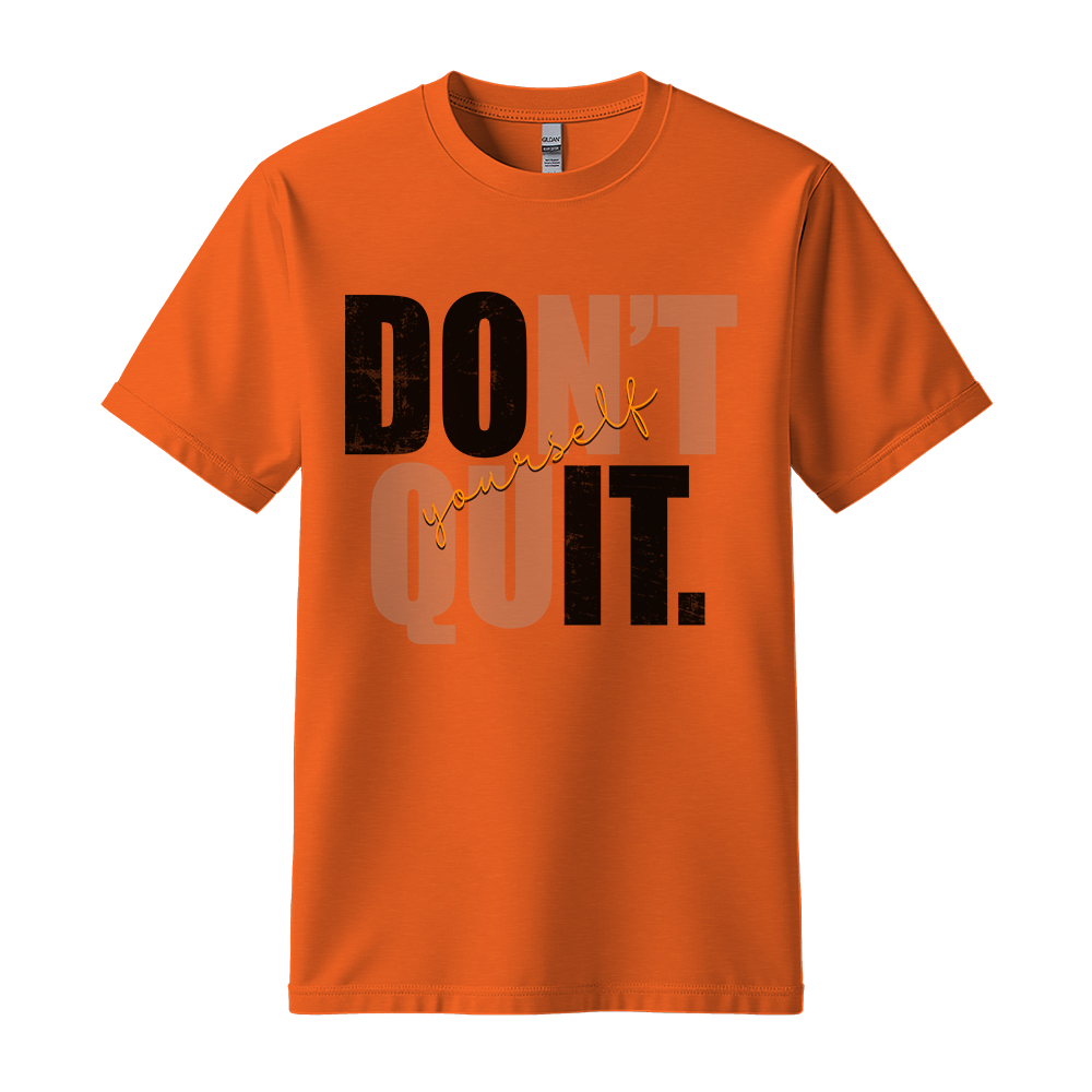 Take charge and embrace the power of the Do It Yourself Action motivational apparel. This bold design, with the core message "DON'T QUIT" cleverly incorporating "yourself," inspires personal initiative and belief in your own ability. Perfect for creators, builders, and independent self-starters, this motivational apparel is a strong piece of t shirts with quotes that encourages immediate action and independence.